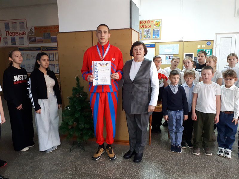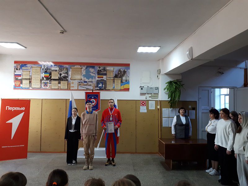 Учебная неделя традиционно начинается с торжественного выноса флага Российской Федерации и исполнения гимна. На линейке директором школы вручены грамота и медаль Станиславу Гордиенко за 2 место в беге на 3000 м в Первенстве Ростовской области среди юношей и девушек до 18 лет, в областных соревнованиях среди юниоров и юниорок до 20 лет, до 23 лет. Поздравляем!