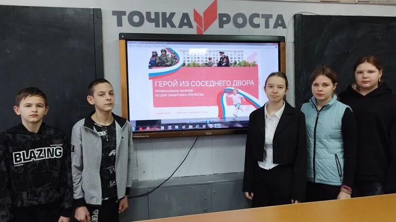 После традиционного поднятия Флага и исполнения Гимна Российской Федерации обучающиеся приняли участие в «Разговорах о важном» по теме «Герой из соседнего двора» и посвящен героям прошлого и настоящего, которые живут рядом с нами.