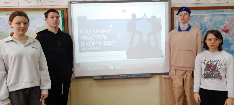 Затем прошло очередное занятие из цикла «Разговоры о важном». Тема встречи — «Что значит работать в команде» — оказалась не просто актуальной, но и очень полезной для учеников всех возрастов.