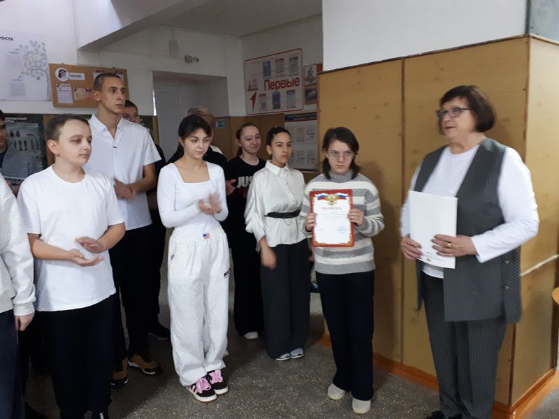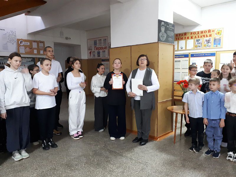 Утро понедельника 8 декабря 2025 года в школе традиционно началось с поднятия флага, исполнения гимна РФ и цикла внеурочных занятий «Разговоров о важном». На линейке директором школы вручены грамоты победителям и призёрам олимпиад.