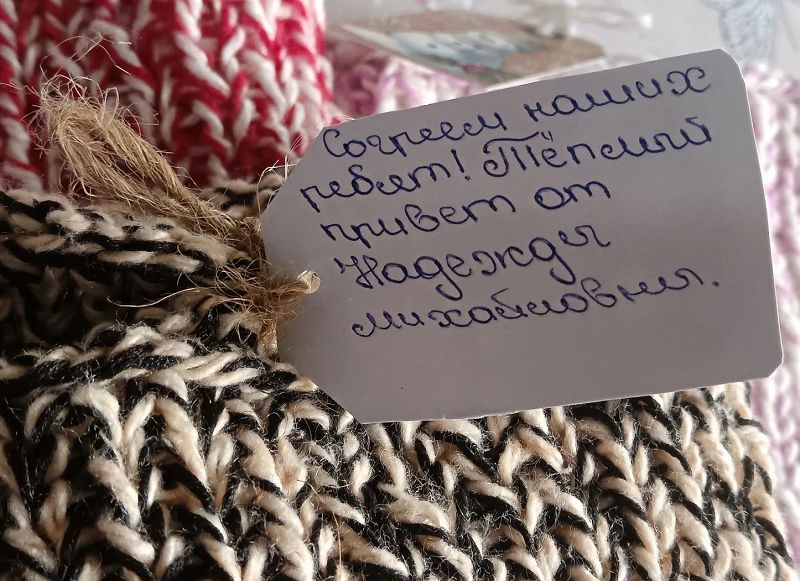 К акции также присоединились местные жители: Надежда Михайловна связала для солдат 11пар шерстяных носков, Людмила Николаевна и Нина Владимировна регулярно покупают хлеб для сухарей, из которого ребята из «Школы волонтеров» насушили «Армейские сухарики» со специями. Дети сделали мыло ручной работы, авторские кружки с сублимационной печатью и подписали поздравительные открытки участникам специальной военной операции.