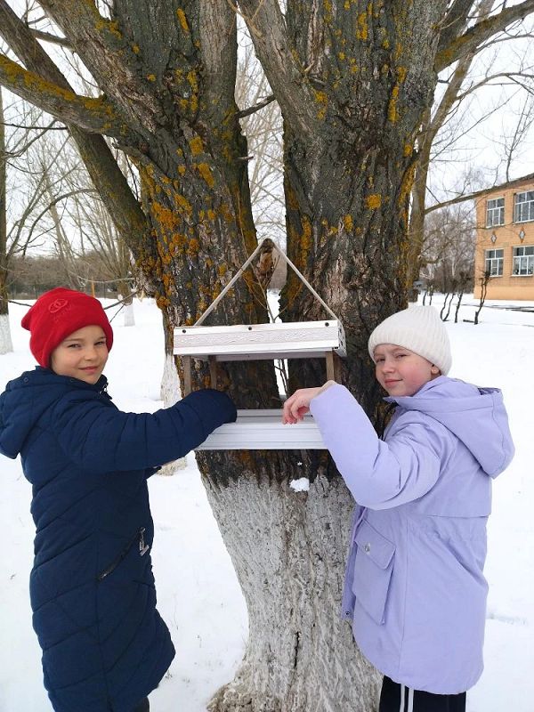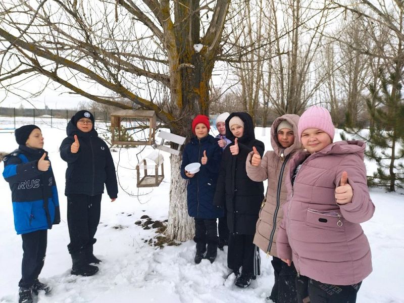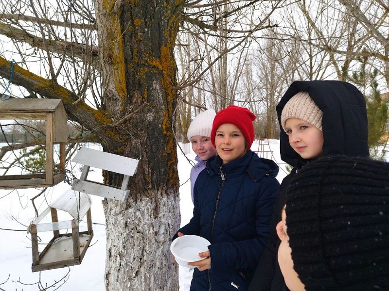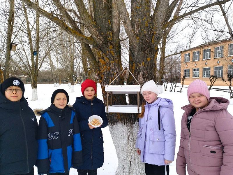 Добровольцы нарисовали плакат, на котором изобразили зимующих в нашей местности птиц. Ребята принесли свежее сало, семена подсолнечника, подсушенные хлебные крошки. Корм унесли в кормушки, которые есть на территории школы. Теперь по мере необходимости дети будут пополнять кормушки, наблюдать за птицами, которые их посещают.