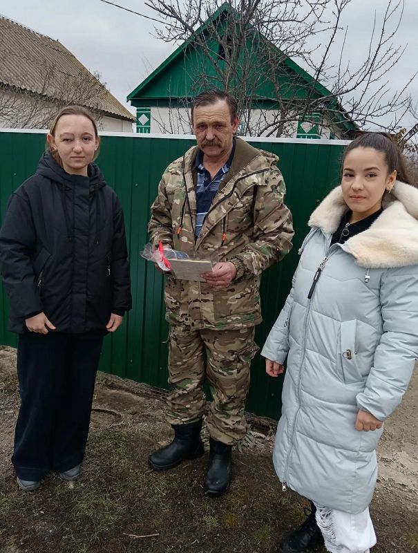 Ребята приложили много усилий и душевного тепла. Дети напекли блинов с мясом, сделали бутерброды с салом и чесноком, самостоятельно нажарили сухариков с изобилием специй и сделали около ста окопных свечей для солдат. Совместно с МЦБ и Качалинским отделом МЦБ приняли участие во Всероссийской акции «Письмо солдату СВО». Также школьники изготовили поздравительные открытки для мужчин своего села и поздравили их: Харченко Андрея Анатольевича, Василец Михаила Евсеевича, Гордиенко Геннадия Николаевича, Субботина Александра Семеновича, Лебедева Сергея Борисовича, Забродина Владимира Владимировича.