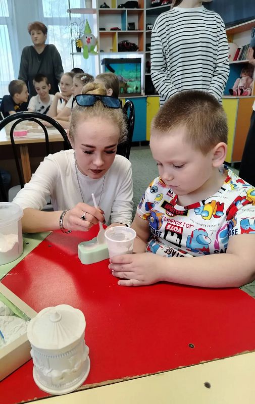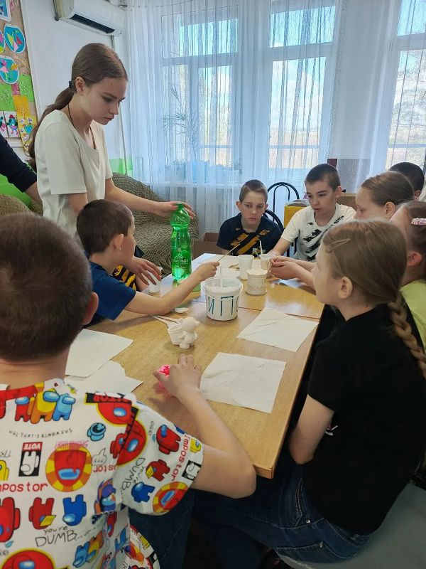 9 апреля ребята из объединения "Школа волонтеров» под руководством Бородиной Н.А. посетили ГБУСОН РО "СРЦ Тацинского района". Провели для воспитанников центра трогательную акцию "Дари добро". В преддверии Светлой Пасхи школьники организовали увлекательный мастер-класс, где дети вместе создавали гипсовые фигурки пасхальных символов – курочек с яичками и цыплят.